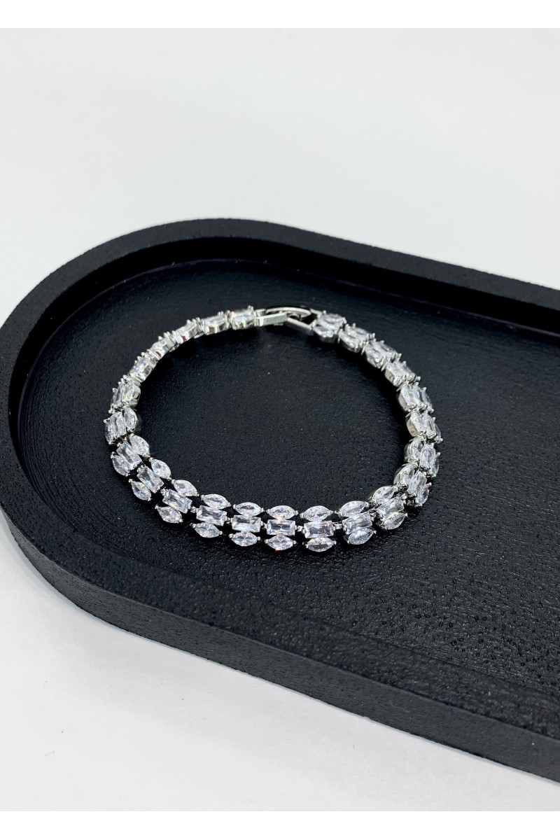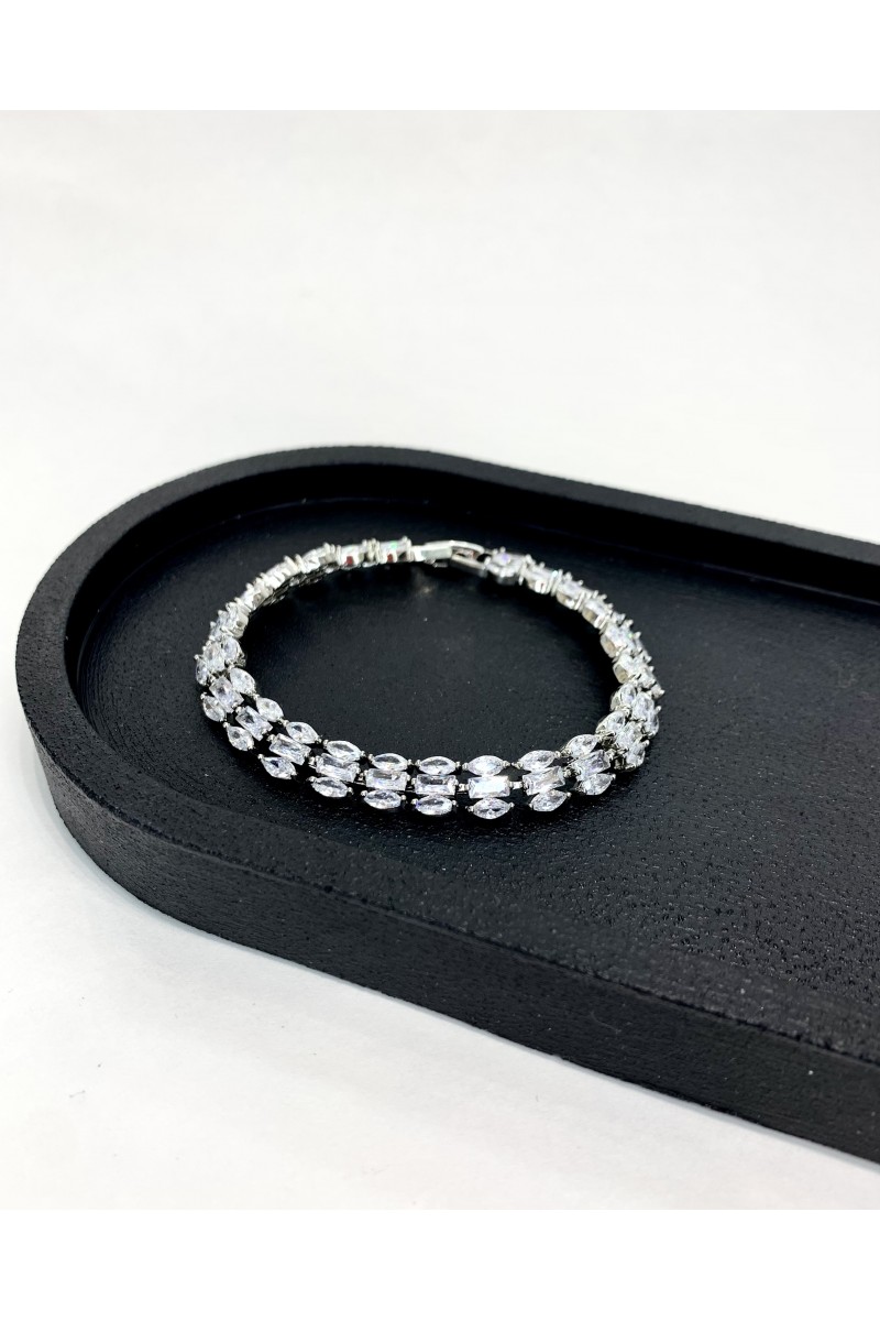 Женский браслет в серебре с цирконами в 3 ряда.