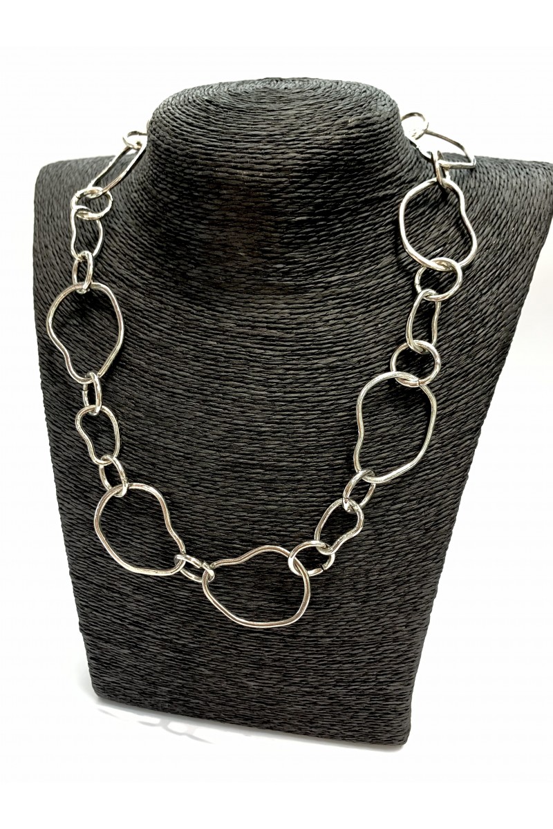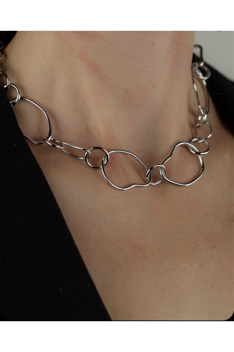 Цепь на шею с неординарными звеньями в серебре из стали