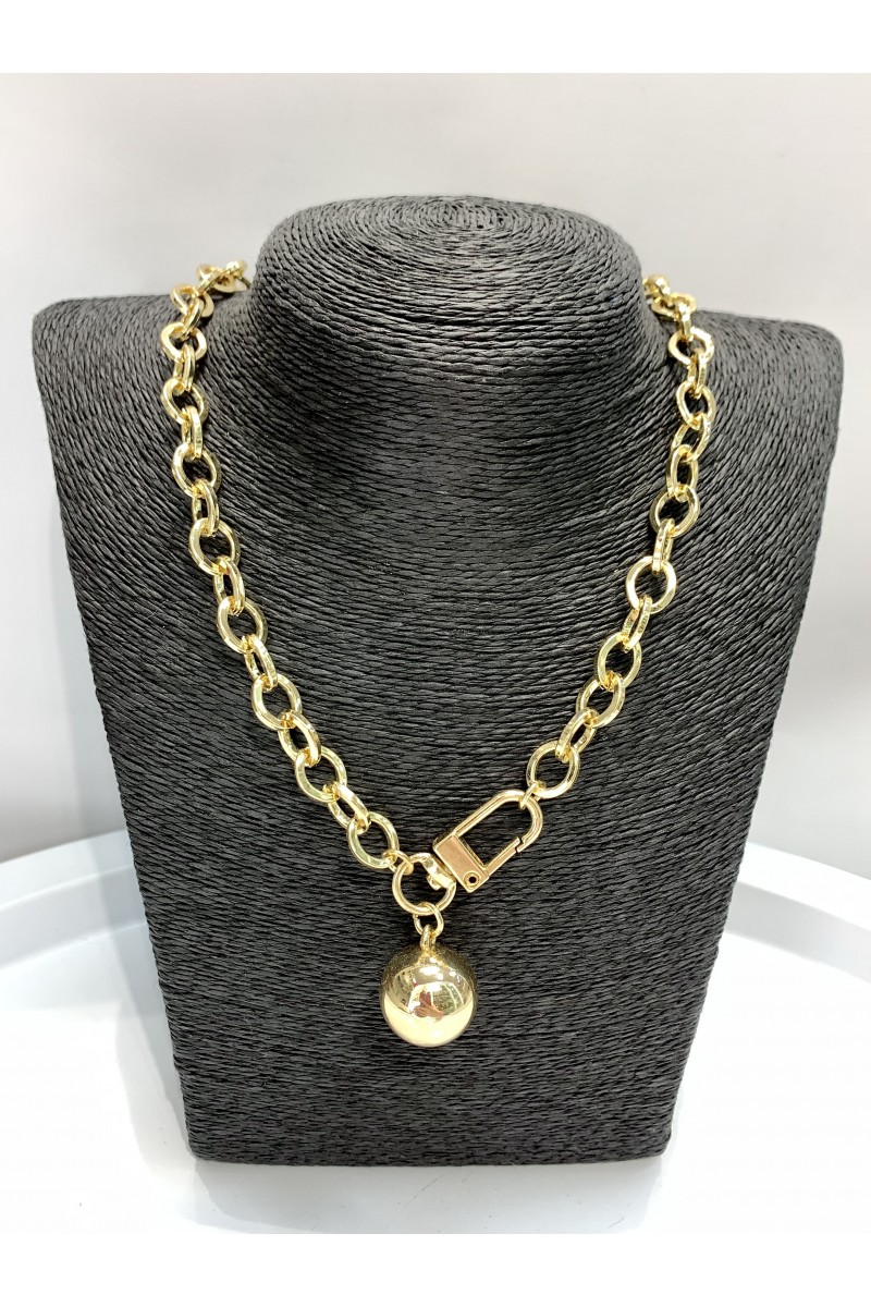 Цепь в золоте на шею с кулоном в форме шара из металла.