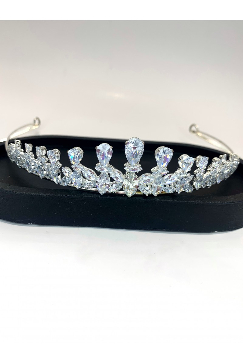 Элегантная диадема в серебре с фианитами является необходимым аксессуаром для создания волшебного образа на свадебную церемонию, а также неповторимого образа на выпускной или костюмированную вечеринку.