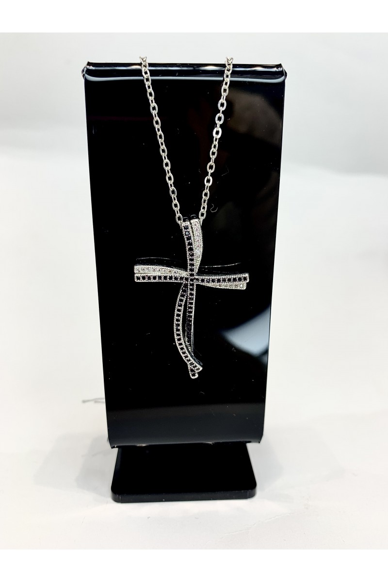 Подвеска с крестиком в серебре со стразами