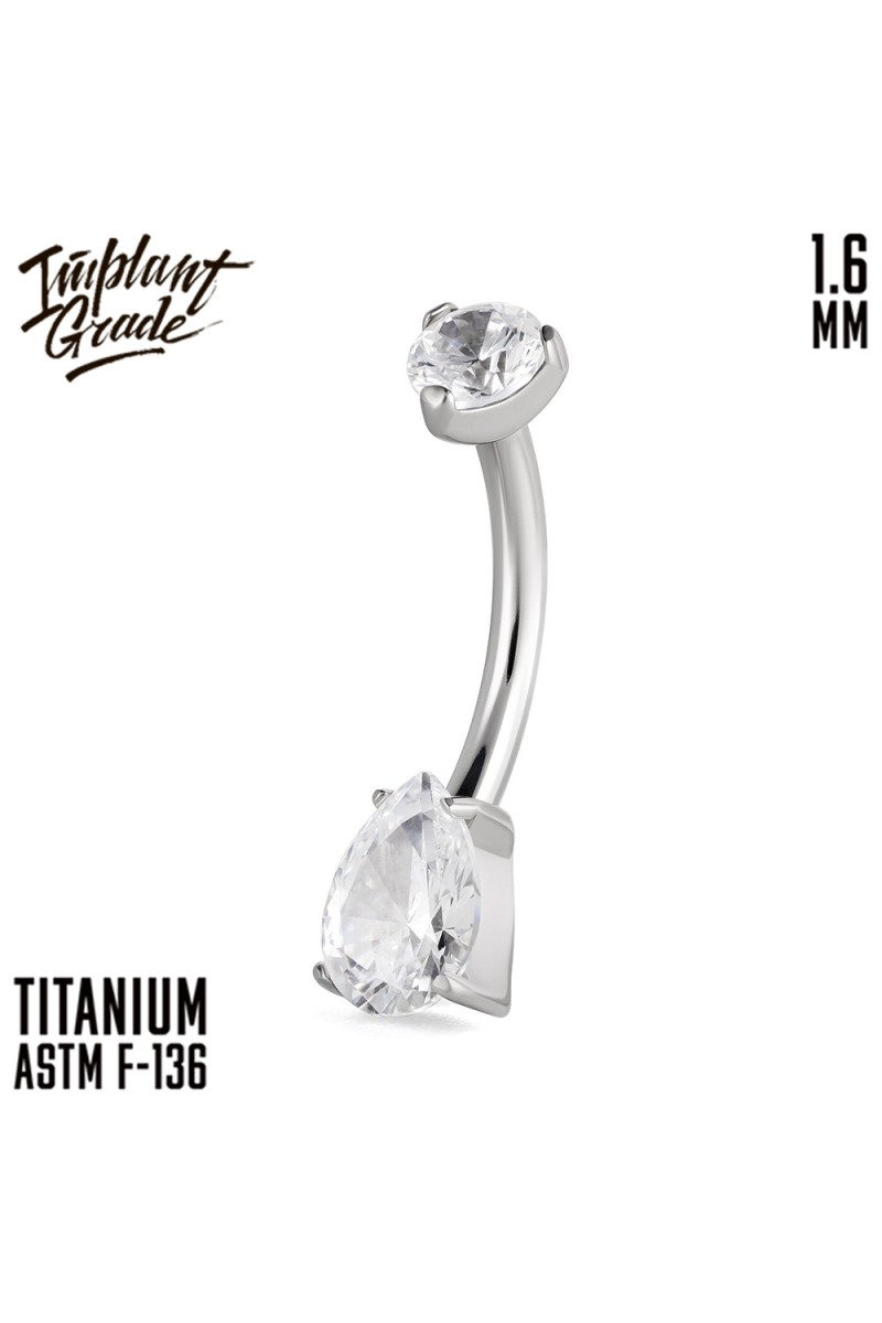Пирсинг в пупок "Oval" 1.6 мм из титана украшен фианитами