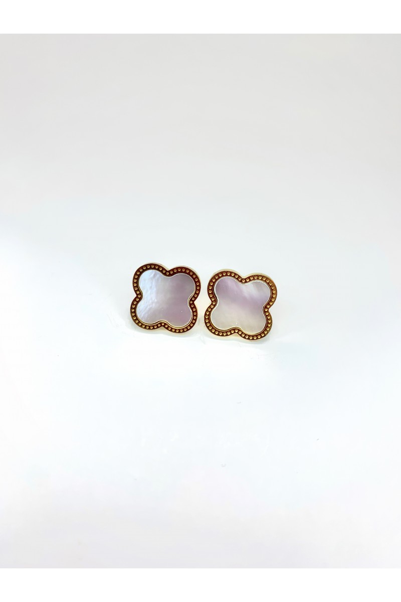 Серьги-гвоздики в золоте в форме клевера с перламутром.