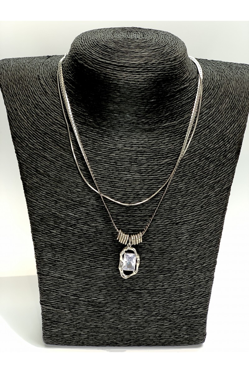 Цепь на шею в серебре двойная с цирконом в обрамлении металла.