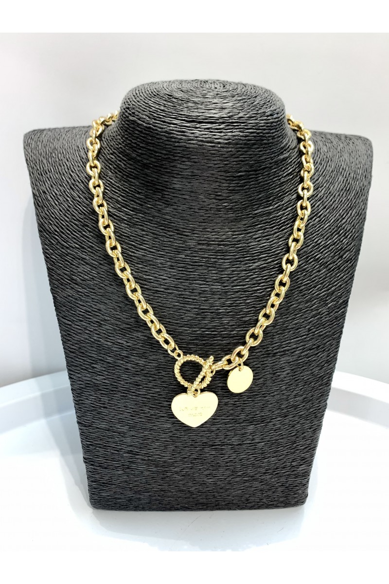 Цепь в золоте на шею с кулоном в форме сердца из металла.