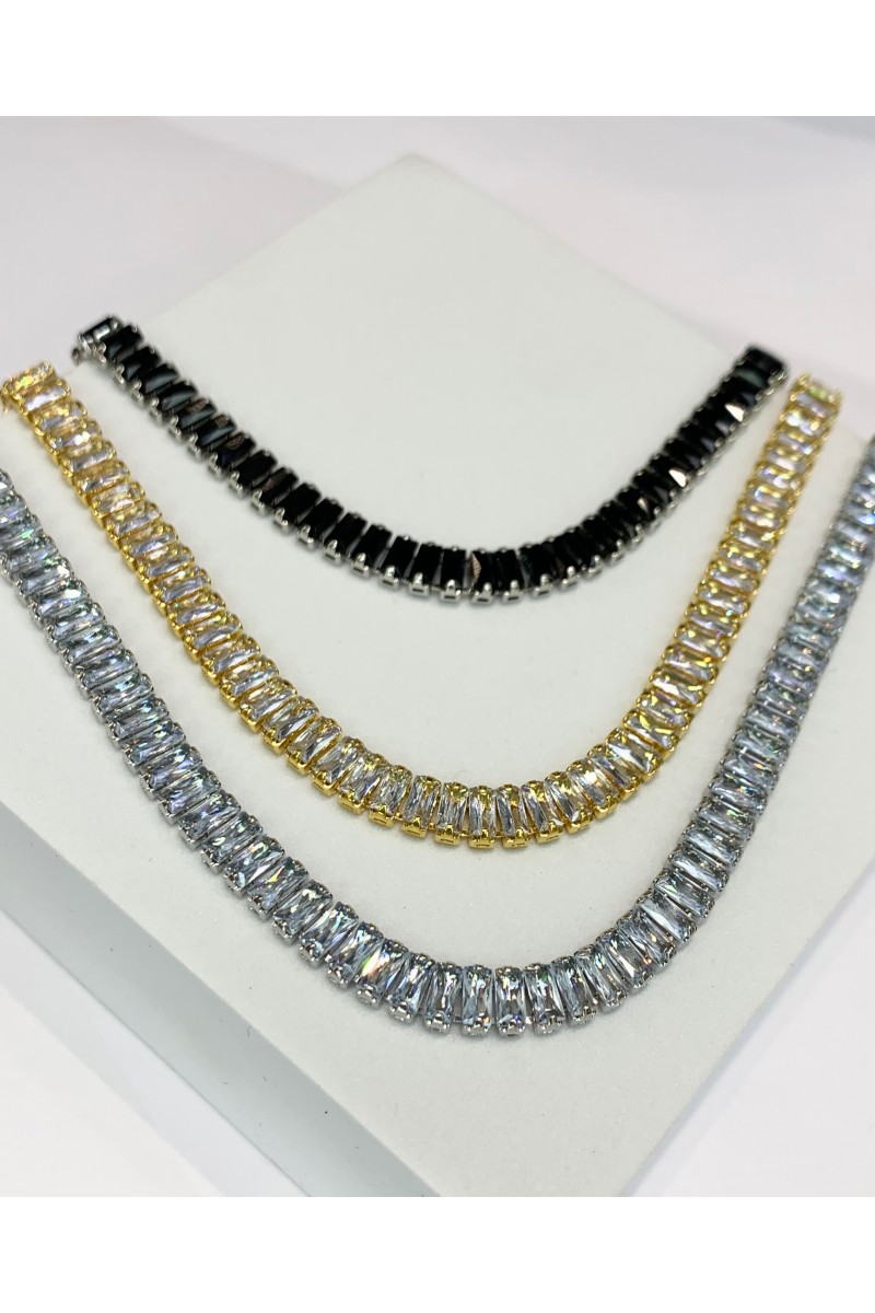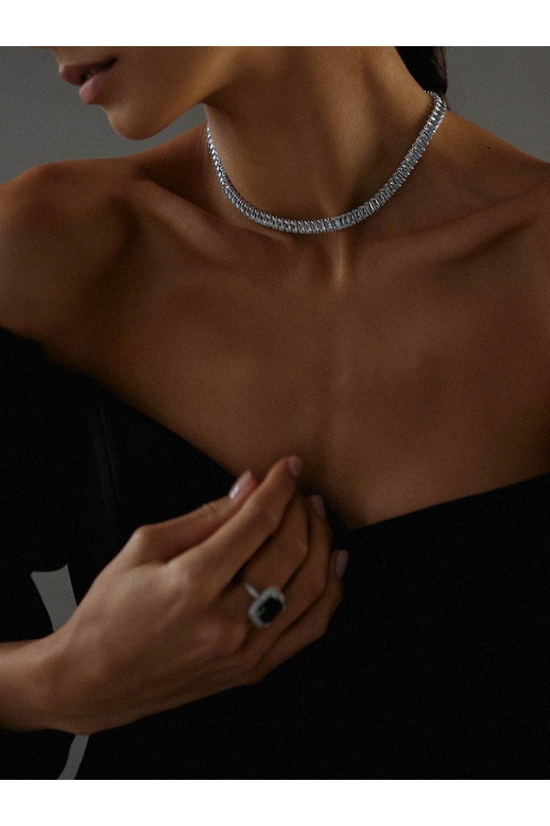 Колье на шею с прямоугольными цирконами в 3-х цветах: серебро, золото, графит.