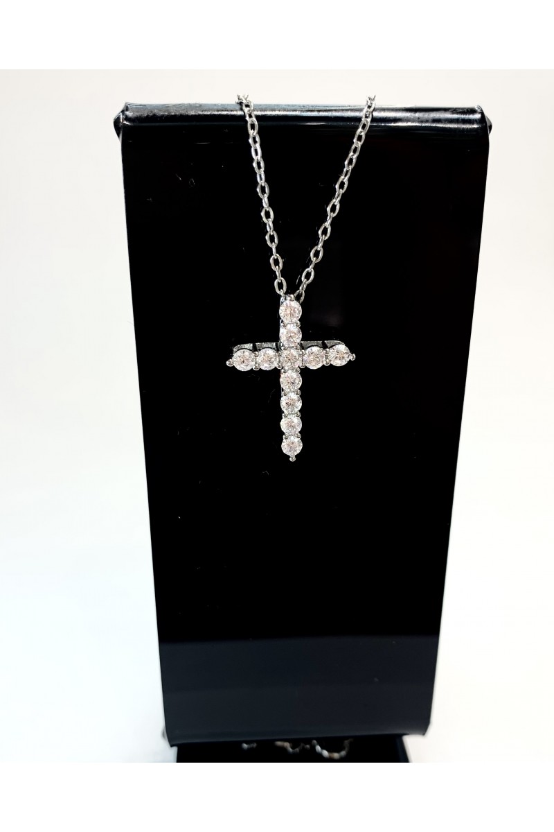 Подвеска с крестиком в серебре с цирконами
