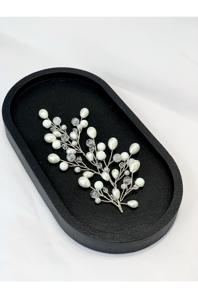 Веточка в прическу ручной работы из ювелирной проволки с имитацией жемчуга, хрустальных бусин.